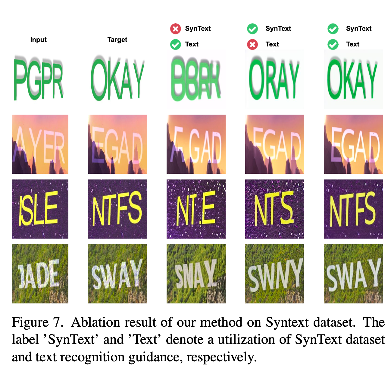 Text recognition guidance로 Diffusion 모델이 문자 오류를 수정하도록 유도하며, 단어 정확도가 크게 개선되었다고 합니다.