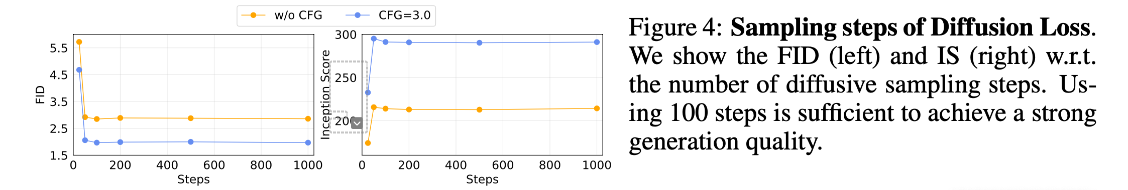 MaskGIT과 유사하게 MAR은 한 번에 여러 토큰을 예측할 수 있습니다. 저자들의 MAR은 여러개의 토큰을 동시에 예측하며 AR step수를 조절할 수 있다는 유연성을 가진다고 합니다.