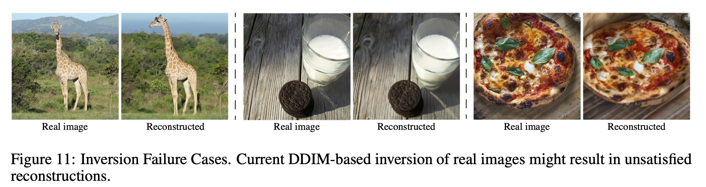 real image에서도 어느정도 잘 동작하지만, 많은 경우 inversion이 제대로 이루어지지 않는 경우가 존재했다고 합니다. 저자들은 이런 현상은 distortion-editability tradeoff 문제 때문일 수 있다고 합니다.