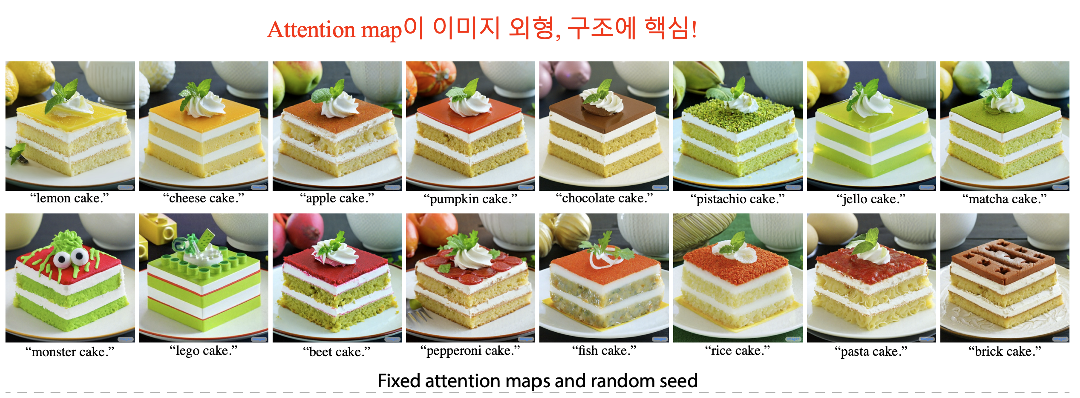 특히 cross-attention map을 이미지 \(\mathcal I\)에 Injecting 함으로써, original 이미지 구조를 유지하면서 이미지 편집이 가능하다고 합니다.