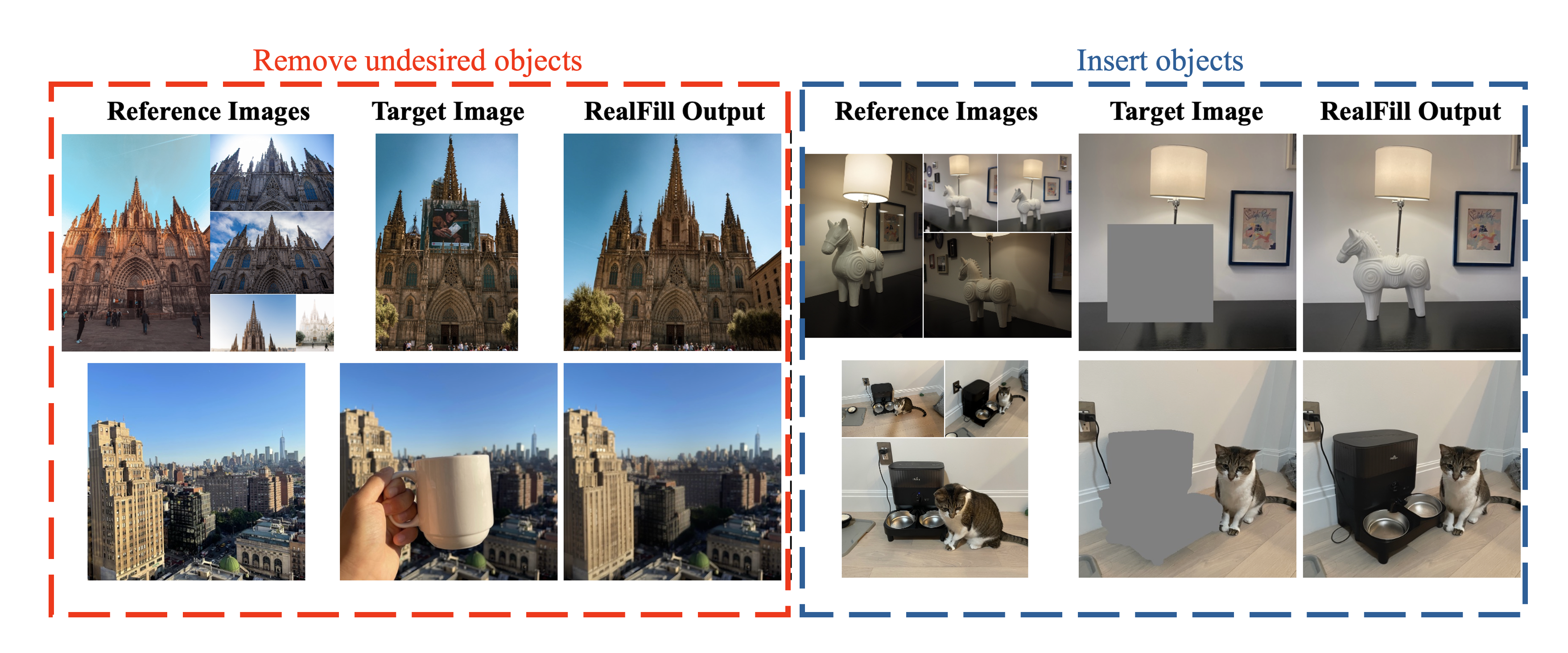 RealFill은 reference-driven generation을 사용하여 누락된 이미지 부분을 복원하는 새로운 Image completion 방법론 RealFill을 제안합니다.