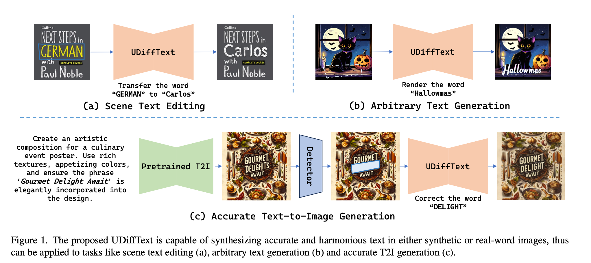 Scene Text Editing, Arbitrary Text Generation, Accurate Text-to-Image Generation 등 여러 task에 활용할 수 있는 UDiffText를 제안.