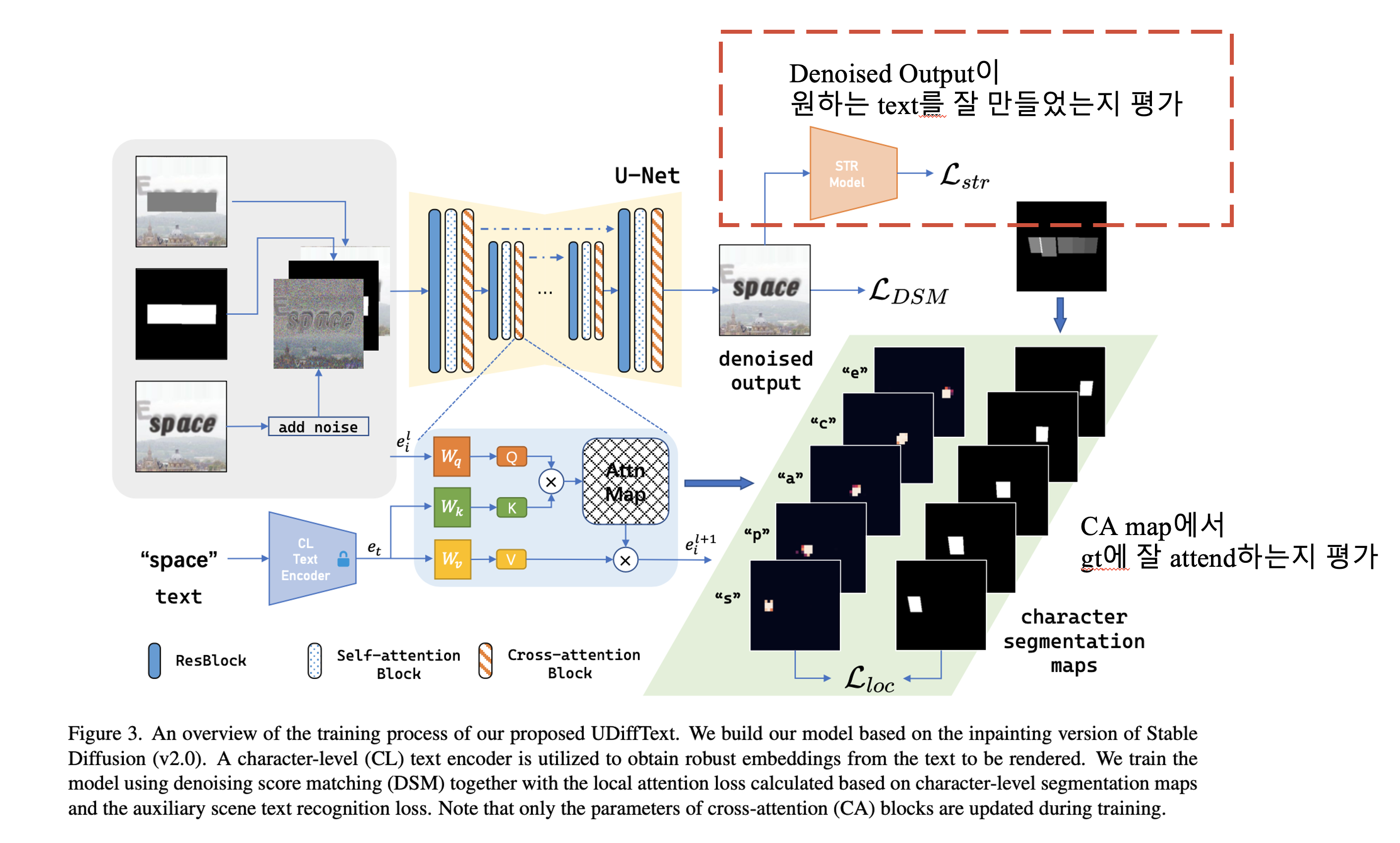 2. Model의 Cross-attention block만 denoising score matching loss, local attention loss, scene text recognition loss로 fine-tune.