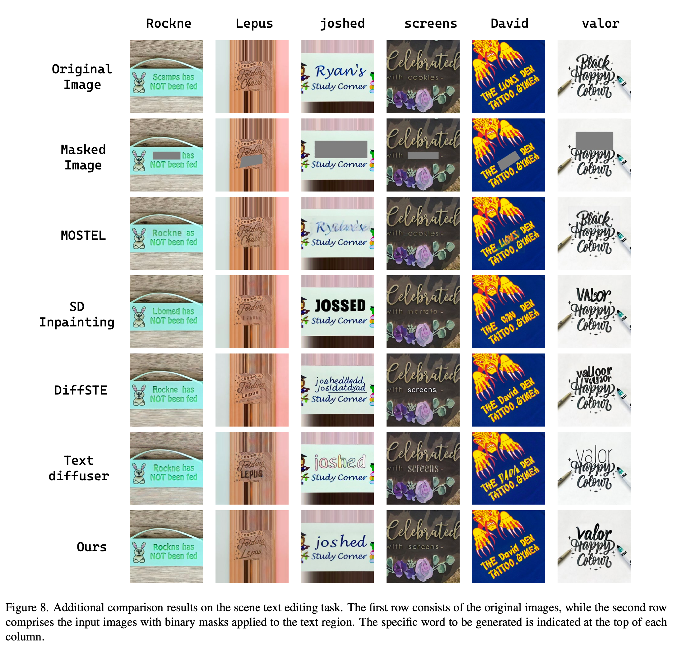 SD의 Text encoder를 저자들의 character level text encoder로 대체하고 Model의 Cross-attention block만 denoising score matching loss, local attention loss, scene text recognition loss로 fine-tune.