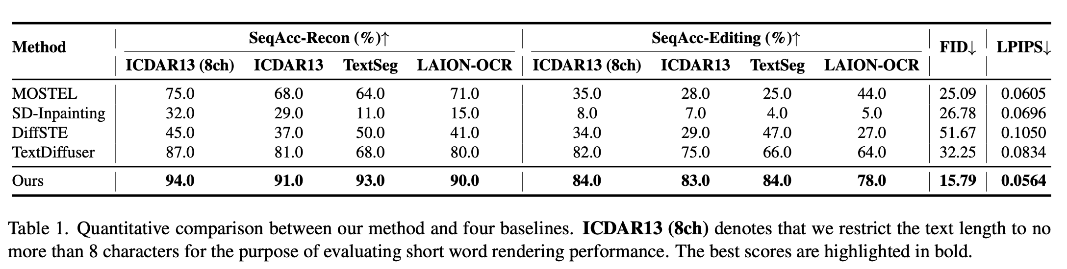 • DiffSTE : Dual encoder 구조 사용 (Character text encoder + instruction text encoder), Instruction tuning.